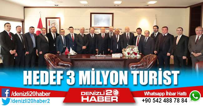 Turizm Haftası dolayısıyla ziyaret ettikleri Denizli Büyükşehir Belediye Başkanı Osman Zolan'a turizme katkılarından dolayı teşekkür eden sektör temsilcileri, bu yıl hedefin 3 milyon turist olduğunu açıkladı. Şehrin termalin başkenti olması noktasında gösterdikleri gayretlerin boşa gitmediğini vurgulayan Başkan Osman Zolan, özellikle Termal İyi Gelir kampanyasından çok olumlu sonuçlar aldıklarını söyledi.