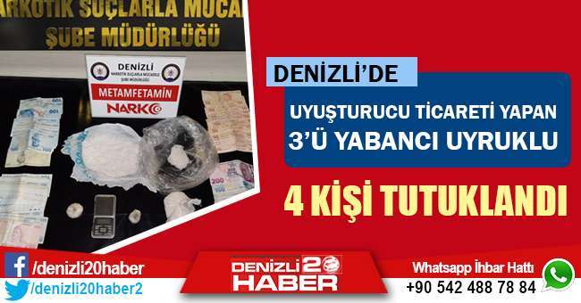 Denizli İl Emniyet Müdürlüğüne bağlı Narkotik Suçlarla Mücadele Şube ekipleri kentte uyuşturucu madde ticareti yapan şahısları tespit ederek takibe aldı. kısa süreli takibin ardından 3’ü yabancı uyruklu olduğu öğrenilen 4 şahsın adresine operasyon düzenlendi.