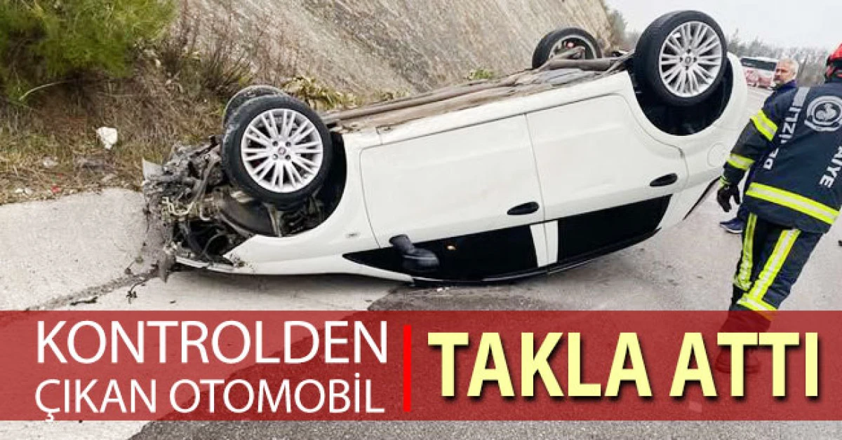 Denizli’de yağış sonrası kayganlaşan yolda kontrolden çıkan otomobil takla attı. Kazada ölen ya da yaralanan olmazken maddi hasar oluştu.