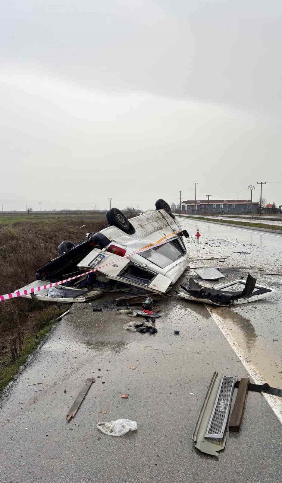 Yağış sonrası kayganlaşan yolda taklalar atan transit hurdaya döndü: 2 yaralı