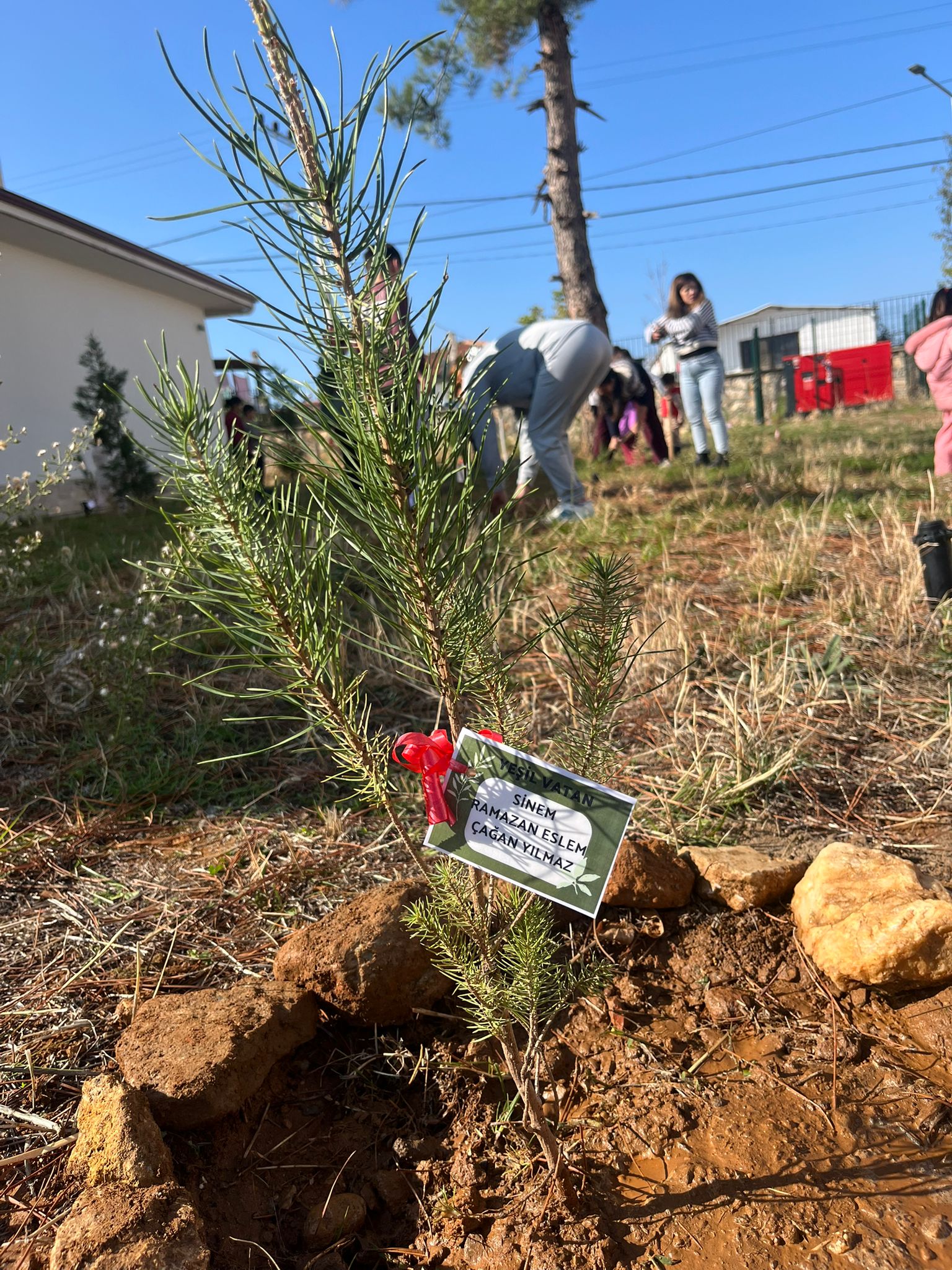 Denizli Babadağ Halk Eğitim Kelleci Köy Yaşam Merkezi’nde Eğitimci Nazan Yeler ve 14 kursiyer kadın ve çocuklar "Yeşil Vatan" için el ele verdi.