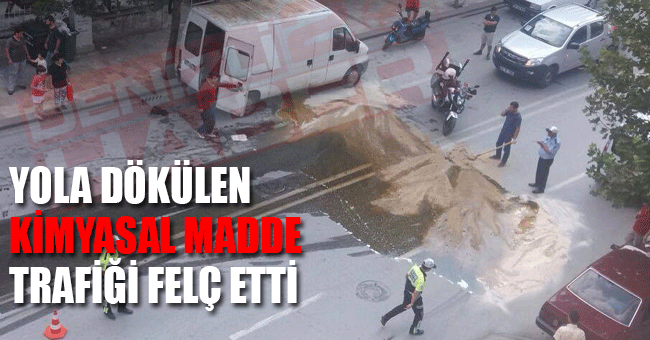 denizli haber / denizli 20 haber / Yola dökülen kimyasal madde trafiği felç etti