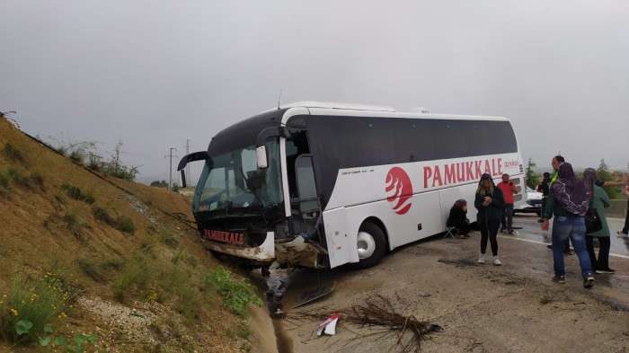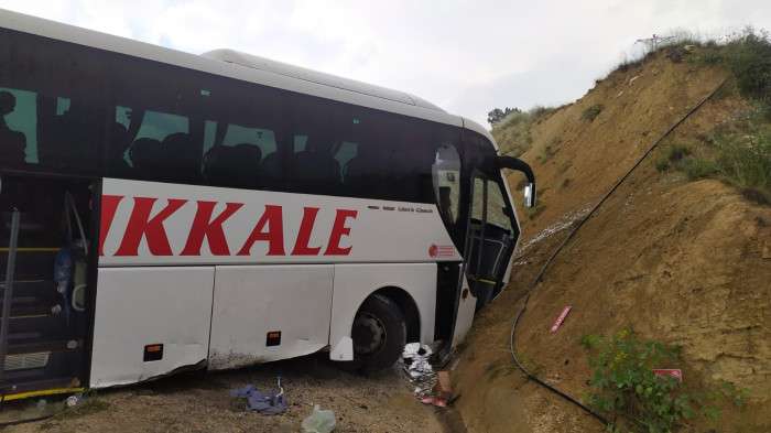 Kaza, saat 14.00 sıralarında Korkuteli-Denizli karayolunun 23'üncü kilometresi Saksağan Beli mevkisinde meydana geldi. Alınan bilgiye göre, Denizli’den Antalya’ya gelmekte olan Pamukkale firmasına ait Filiz C. (50) yönetimindeki 35 PK 906 plakalı otobüs, yağmur nedeniyle kayganlaşan yolda kontrolden çıktı. Otobüs şarampolde bulunan toprak yığınına vurarak durabildi. İhbarın ardından bölgeye çok sayıda itfaiye ve sağlık ekibi sevk edildi. Kazada yaralanan 10 yolcunun ilk müdahalesi olay yerinde yapıldı. Kazada ağır yaralanan olmazken, bazı yolcular kontrol amaçlı hastaneye kaldırıldı.