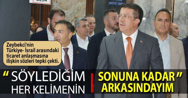 İzmir'de mermer ve doğaltaş fuarında konuşan Zeybekci, " İsrail'de çok önemli bağlantıları olan arkadaşlarımız da var. Yani eyvallah, İsrail'in Filistin'de, Gazze'de Müslümanlara yaptığı soykırımı, katliamı, bebek katliamını nefretle, şiddetle kınıyoruz. Eyvallah, buna diyecek hiçbir şey yok ama diğer taraftan da ticaretin hiç kimseye zarar vermeyen bölümleriyle ilgili de.. Çünkü bizim İsrail serbest ticaret anlaşmamızın olduğu bir ülke, yani 6 satıp 1 aldığımız bir ülke. O anlamda, daha hassas olmamız gerektiğine inanıyorum. Bununla ilgili de arkadaşlarımızla çalışıyoruz. Ekonomi koordinasyonuyla, ilgili bakanlarımızla, bunu gündeme alıp biraz daha hassas bir ayardan geçmesi gerektiğine, ben şahsi olarak inanıyorum" dedi.